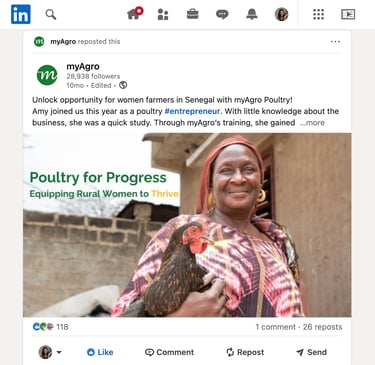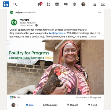 As part of this collaboration, we produced compelling visual and written content, developed a dynamic media library, and captured inspiring farmer stories. These stories were shared across multiple social platforms to amplify myAgro’s mission and highlight the transformative impact of their work within farming communities.